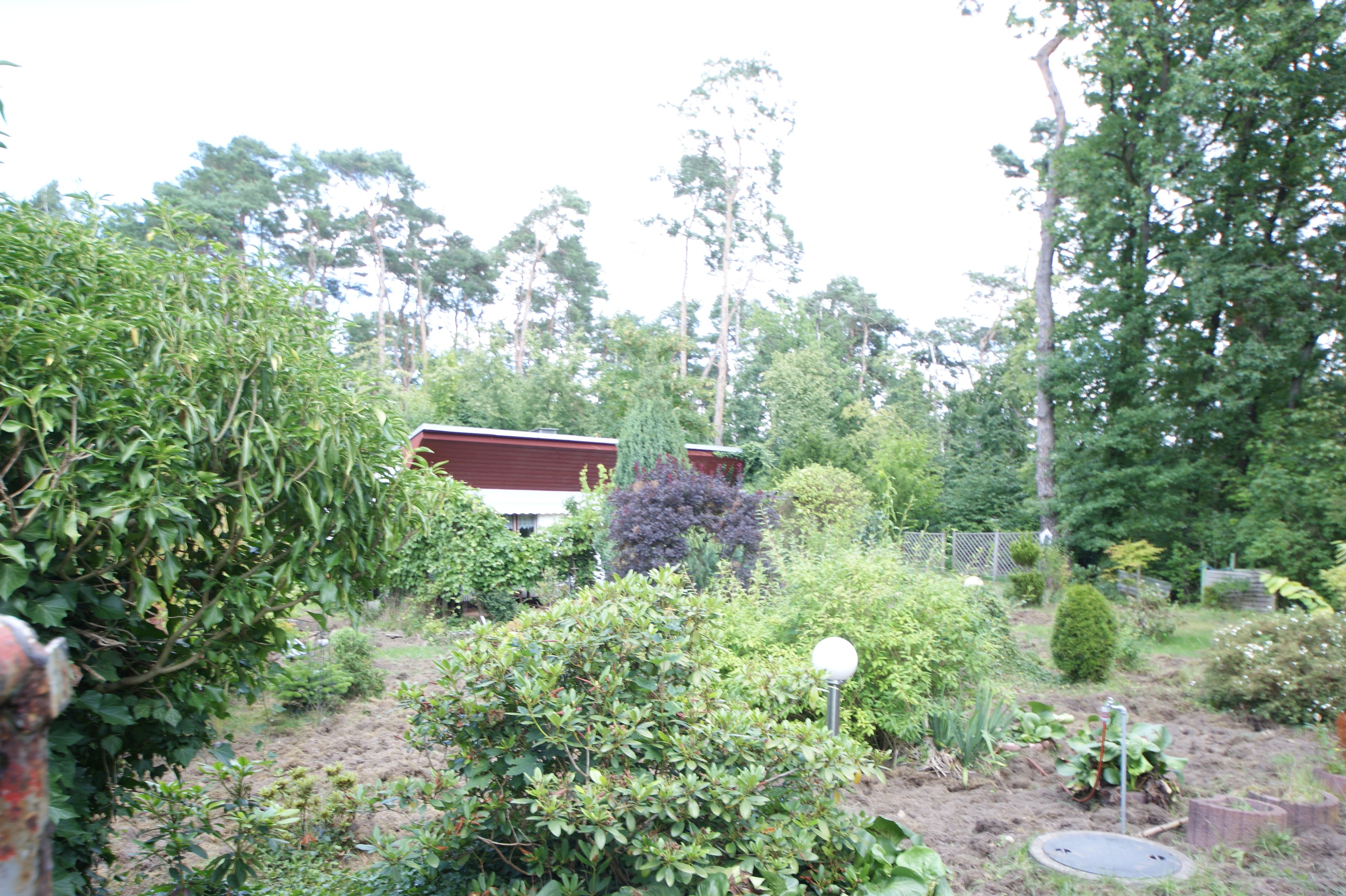 Fast quadratisch geschnittenes Grundstück. Etwas bewachsen, keinesfalls verwildert, nahezu eben, bebaut mit einer alten DDR-Abriss-Laube. Strom und Frischwasser liegen auf dem Grundstück, leider fehlt die Leitung für die Abwasserentsorgung. Bisher wurde über eine Grube entsorgt, wie in der gesamten Siedlung üblich. Wann mit einer Änderung der Situation gerechnet werden kann, ist bedauerlicherweise nicht einschätzbar.